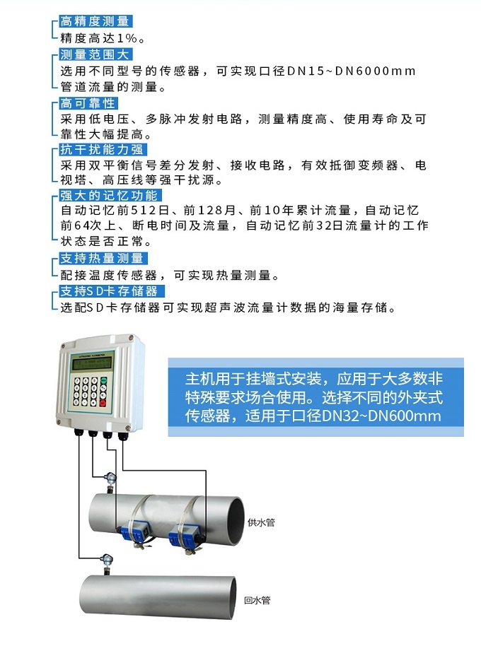 應(yīng)用行業(yè):聯(lián)測壁掛式超聲波流量計在工業(yè)循環(huán)水、空調(diào)制冷循環(huán)水、原水、高壓水、自來水,污水排放管等廣泛應(yīng)用