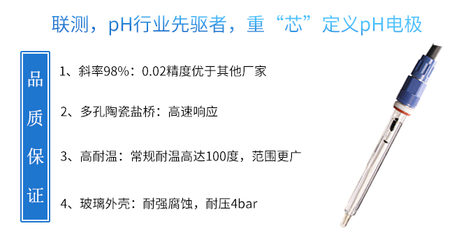 聯測pH5018電極敏感區域大、抗機械沖擊強,耐溫100度。該電極能廣泛用于微生物技術、制藥、食品飲料、制糖,包括氯堿、采礦冶煉、造紙、紙漿、紡織品、石油化工、半導體電子工業等各種化工流程及廢水處理等領域。