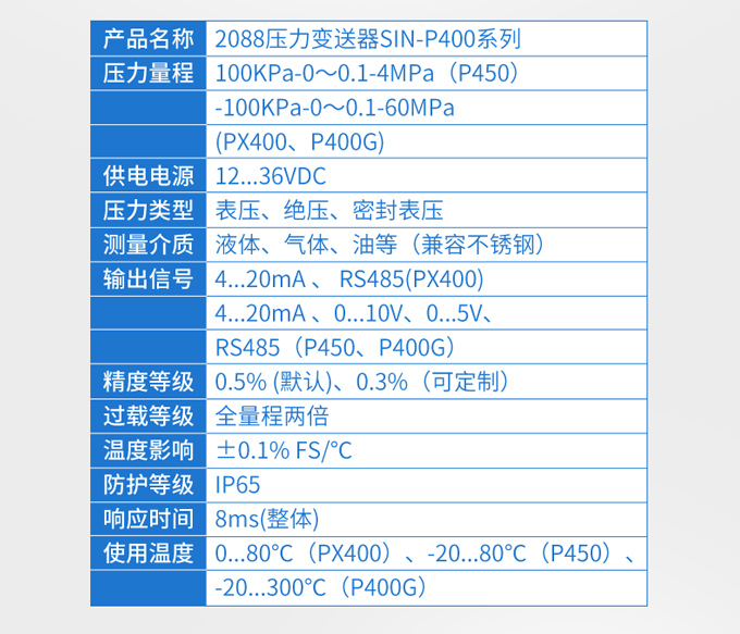 應用行業(yè):SIN-P400的2088殼體防護壓力變送器廣泛應用于恒壓供水、液壓設備、消防水以及化工行業(yè)。